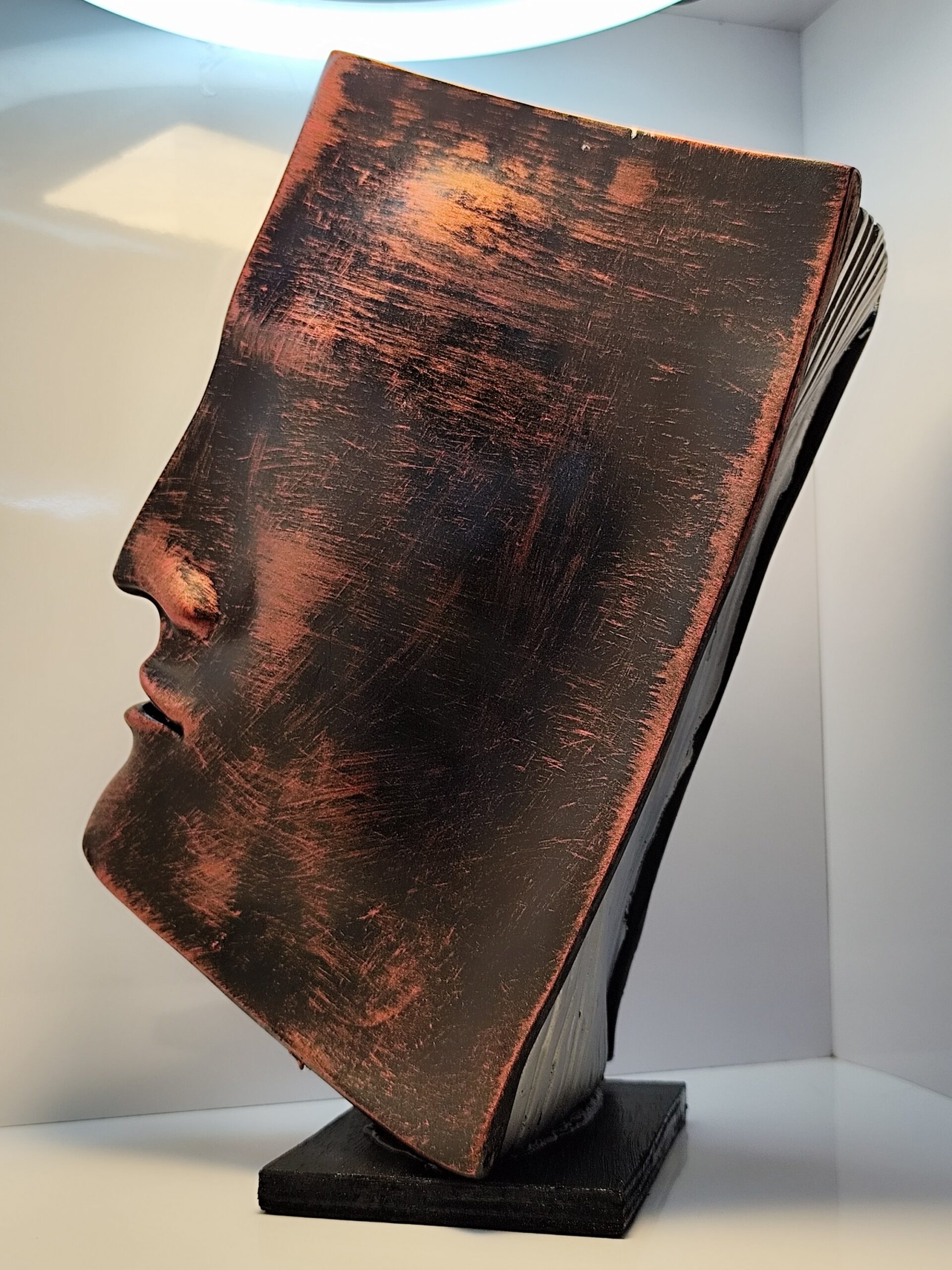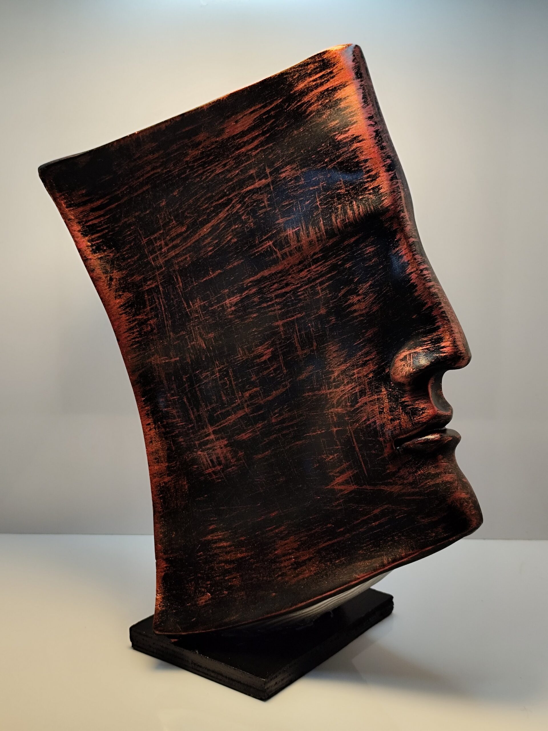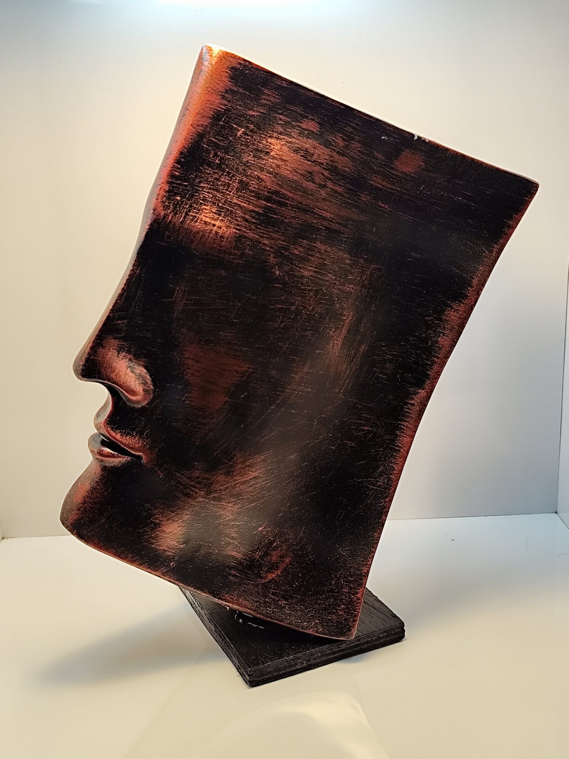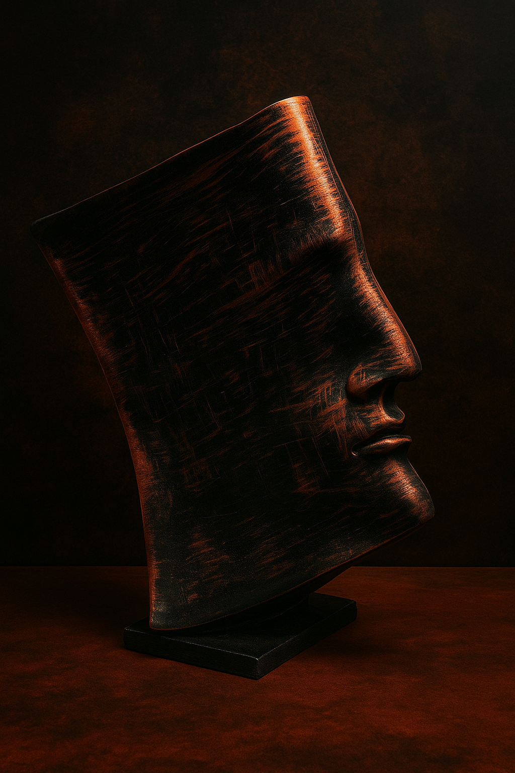 Introducing Eclipse of Thought, an artistic face sculpture that captures introspection, depth, and timeless elegance. Handcrafted with an antique burnished black-copper finish, this bold showpiece speaks to modern art lovers and minimalists alike.