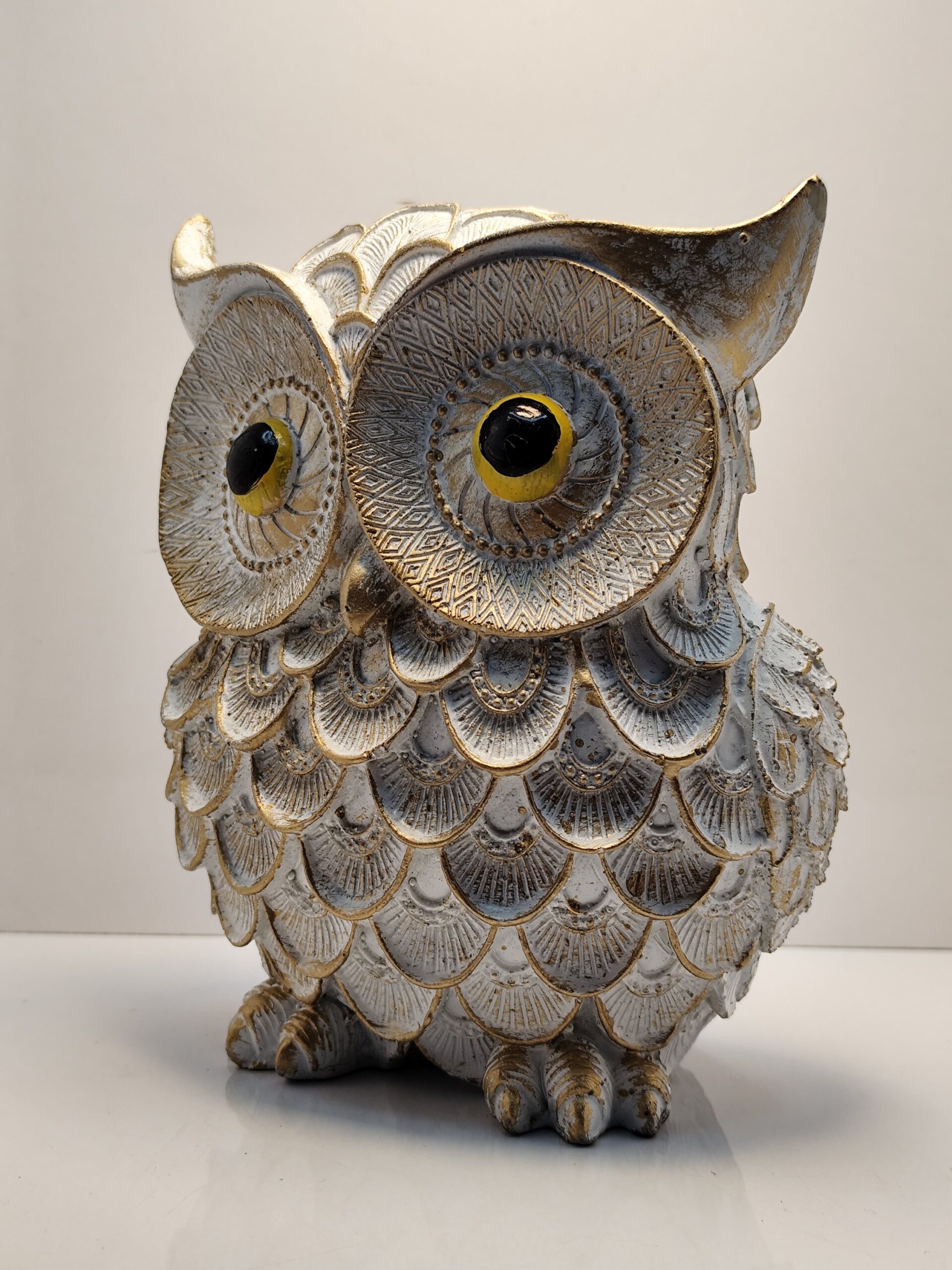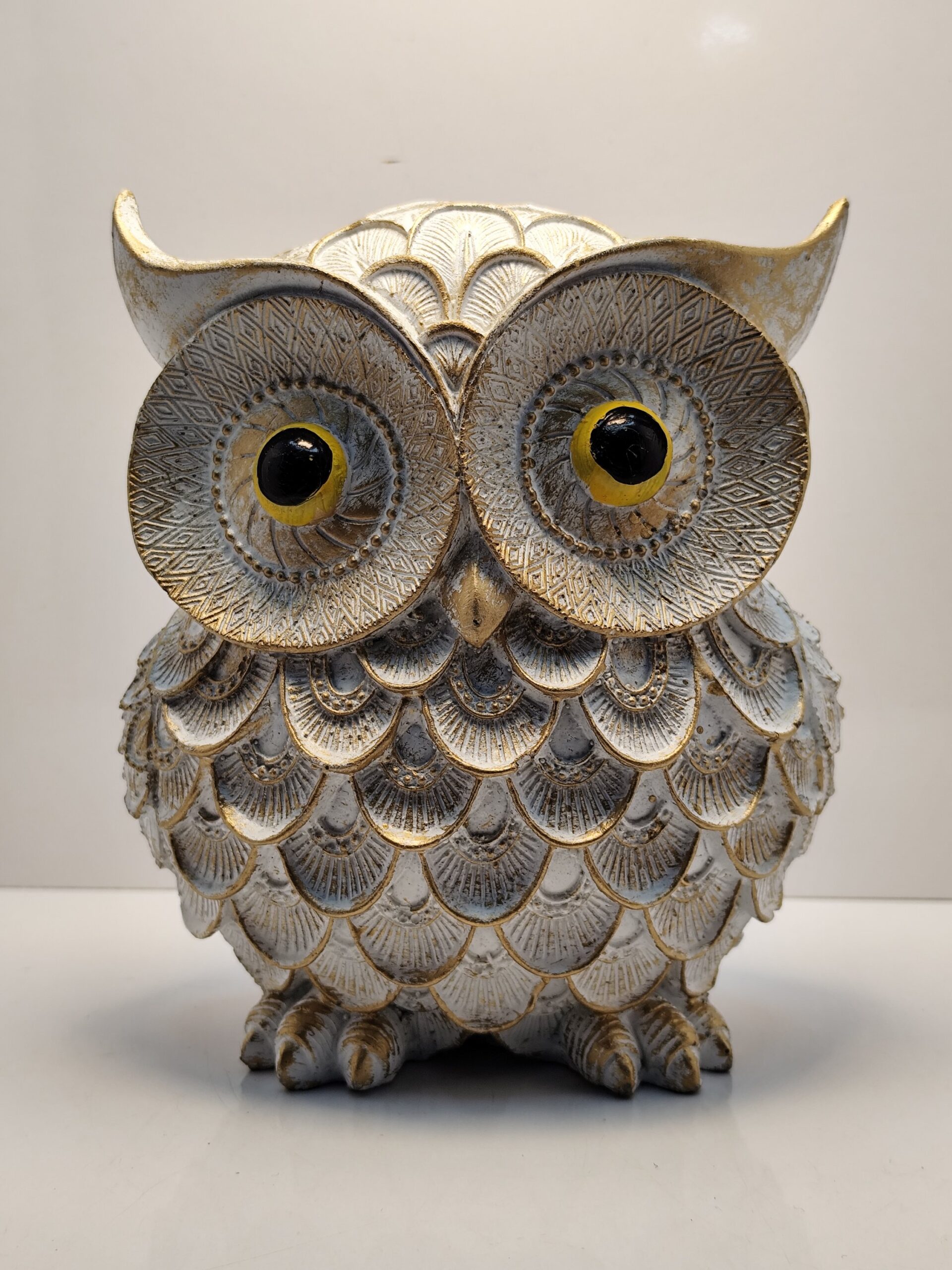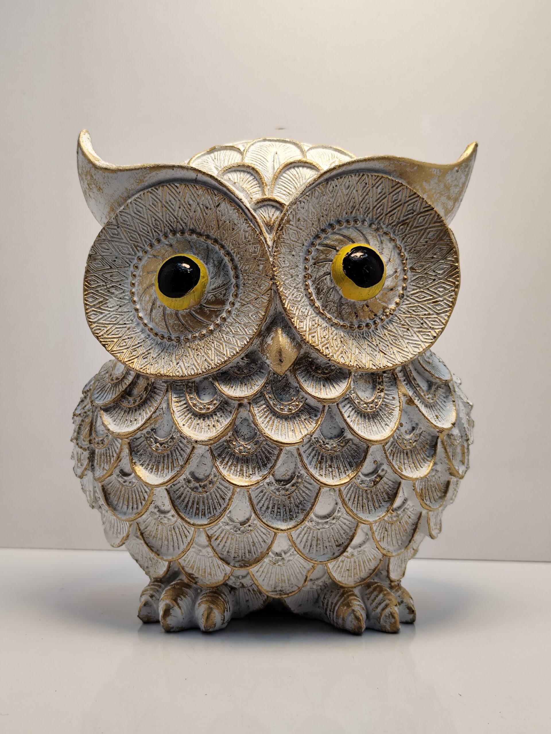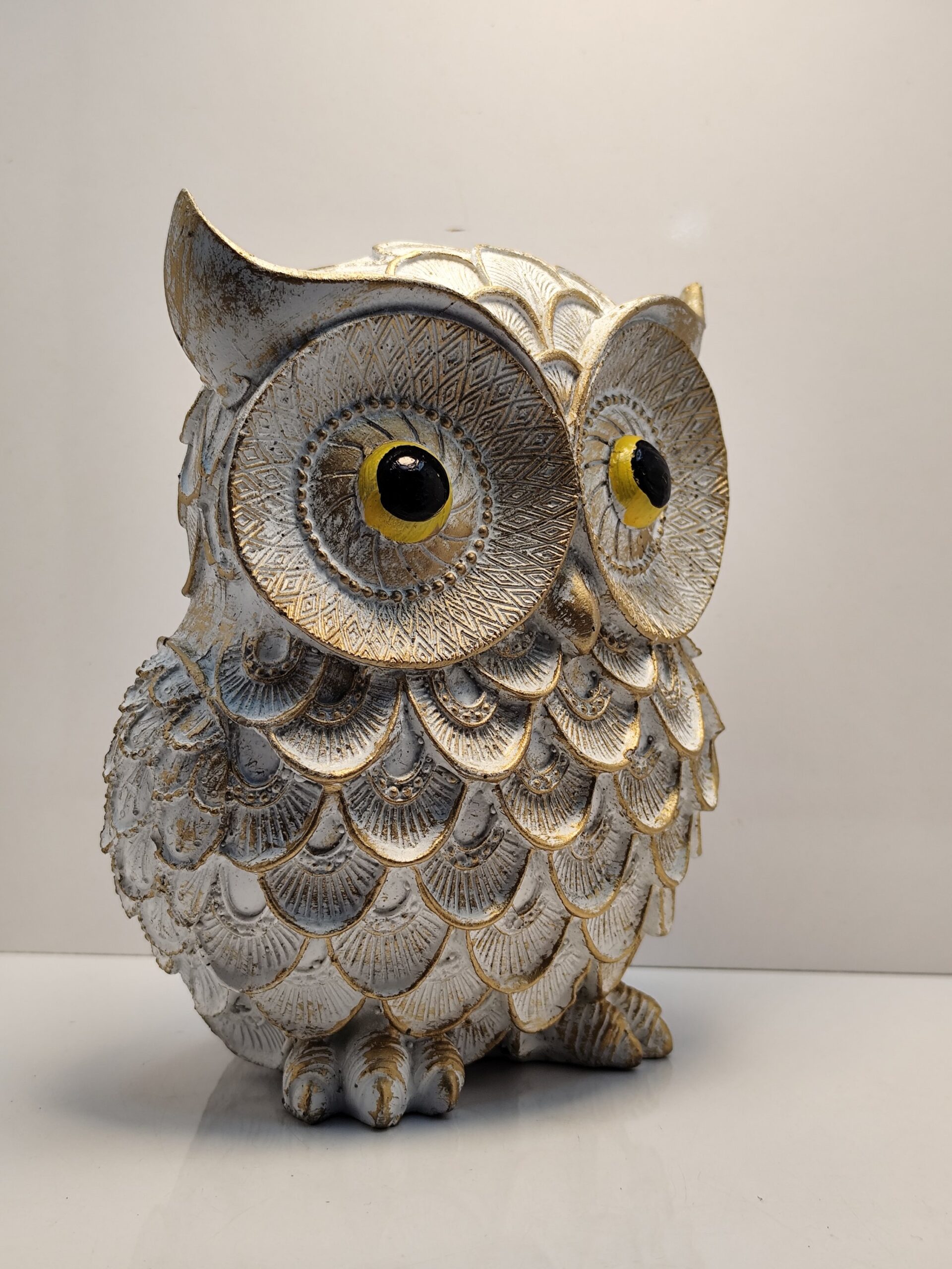 Grace your home with The Majestic Sentinel of Serenity — a handcrafted embodiment of wisdom, calm, and timeless elegance. Adorned in antique gold and ivory hues, this exquisite owl figurine radiates quiet strength and sophistication. Each etched feather tells a story of artistry and precision, making it a perfect guardian for your study, living room, or spiritual corner.